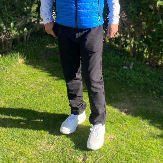 Kompletter Look: technische Golfhose + königliches Thermopolo